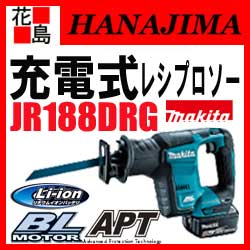 【期間限定ポイント2倍】マキタ MAKITA 充電式 レシプロソー 【JR188DRG】 18V コンパクト ワンハンド 縦配置ブラシレスモーター 縦クランク 防滴 防塵 バッテリBL1860B・充電器DC18RC・ケース付 <マキタ正規販売店!安心・安全のアフターサービス>